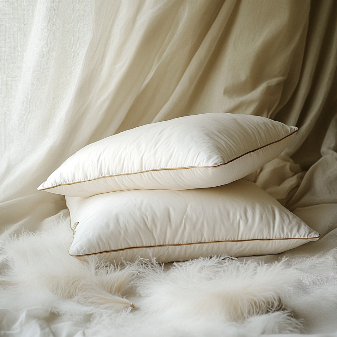Viduje – natūralūs žąsų pūkai ir plunksnos, kad pagalvė būtų ne tik minkšta, bet ir kvėpuojanti, prisitaikanti prie Jūsų galvos formos, švelniai apgaubianti ir primenanti, kad geras miegas – tai ne prabanga, o būtinybė.